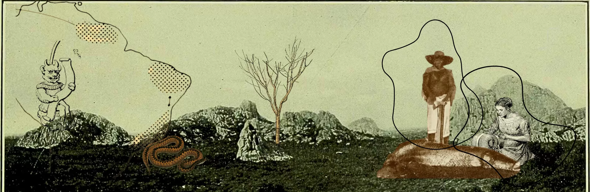 É possível verificar que há na obra o embate entre forças divinas e diabólicas que lutam por sua predominância no espaço ficcional, assim como desencadeiam os conflitos do enredo, demonstrado tanto pela influência do cristianismo e da figura dos padres, que tentam orientar os habitantes de suas condutas desviantes, quanto pela presença das diversas representações assumidas pelo diabo, que ora são personificadas por certos personagens, ora por animais voadores que pairam sob o céu: “Depois da morte de Antônio José Nunes é perceptível que a concepção de mal muda de direção, deixando de ser vinculada à existência física do patriarca para se tornar uma espécie de vírus, que pode ser contagioso. Desta forma, a comunidade passa a sofrer por medo do contágio, medo de ficarem manchados com o vírus do mal de origem, herança do patriarca” (Oliveira, 2019). Assim, sem uma representação fixa, essa presença maligna e perturbadora que ataca o lugar; potencializa e espalha seus efeitos a todos os seres.